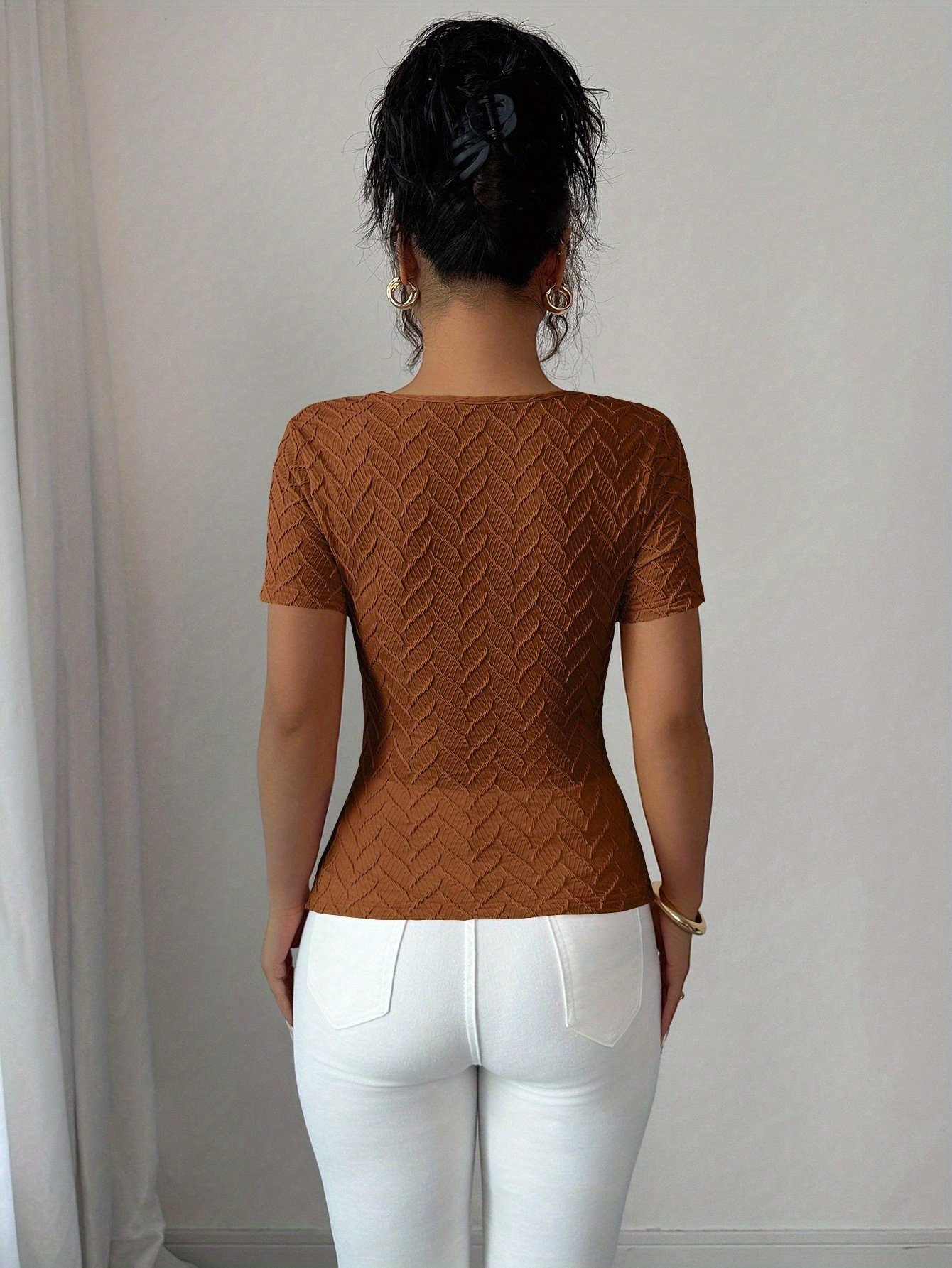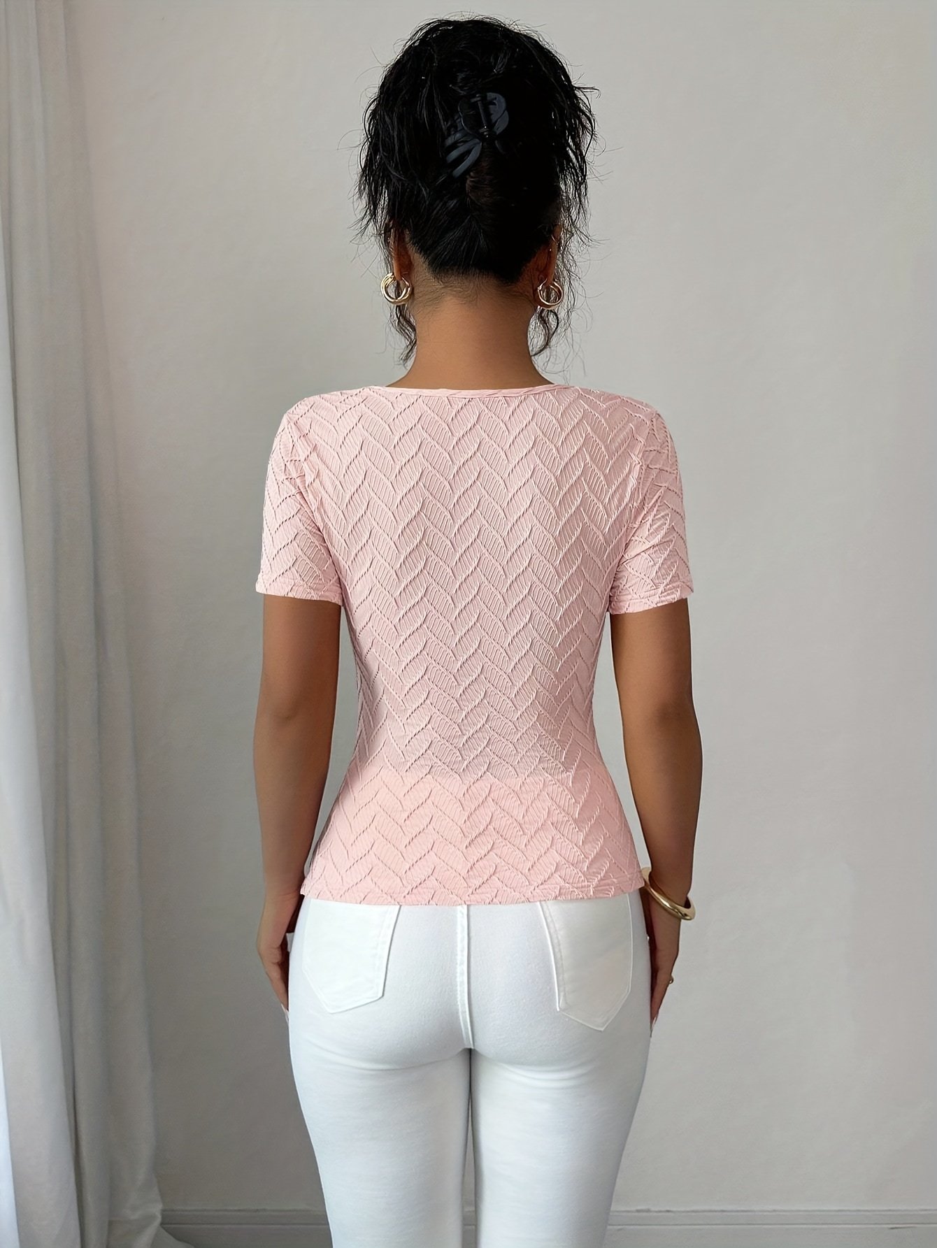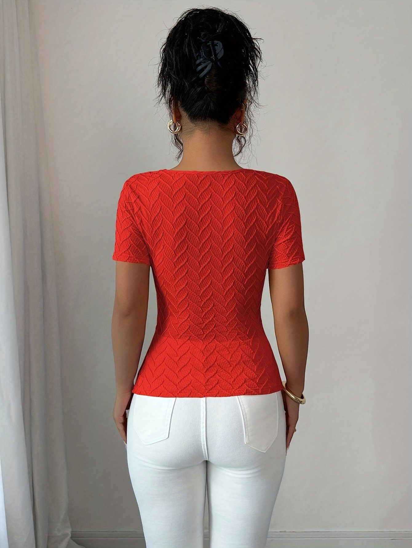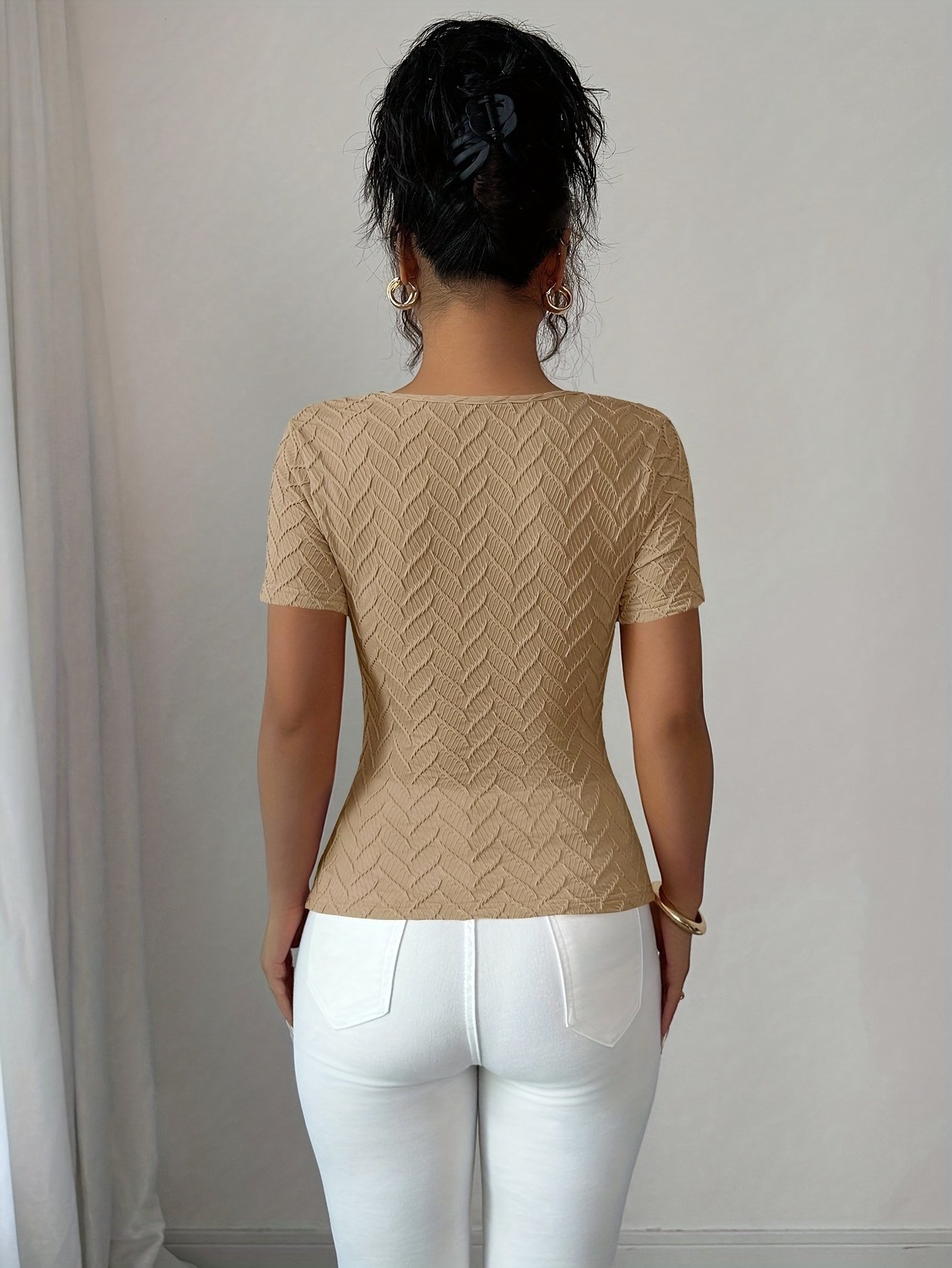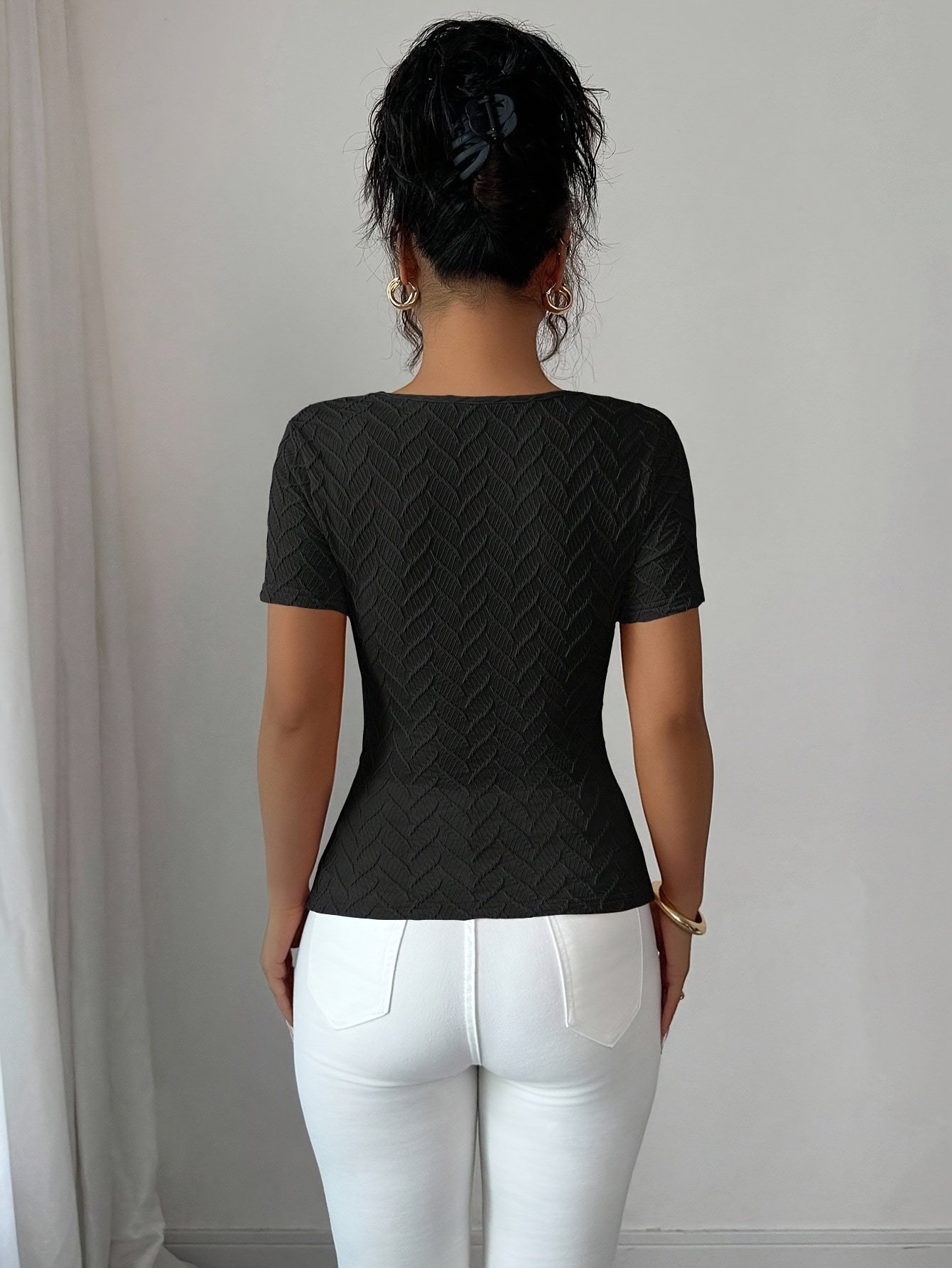 Be the first to review “Elegant Women’S Short-Sleeve T-Shirt with an Irregular Neckline And Metal Buckle Decoration.”