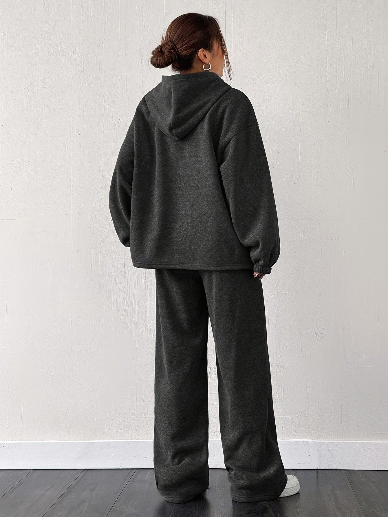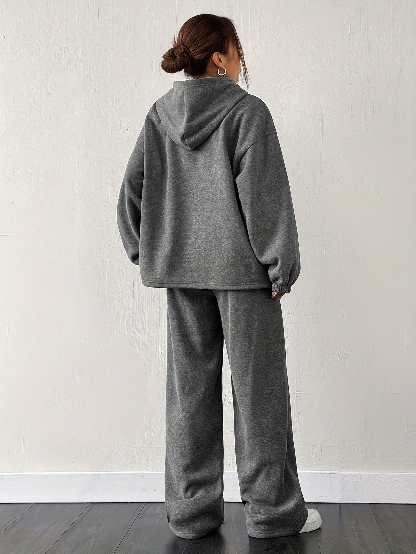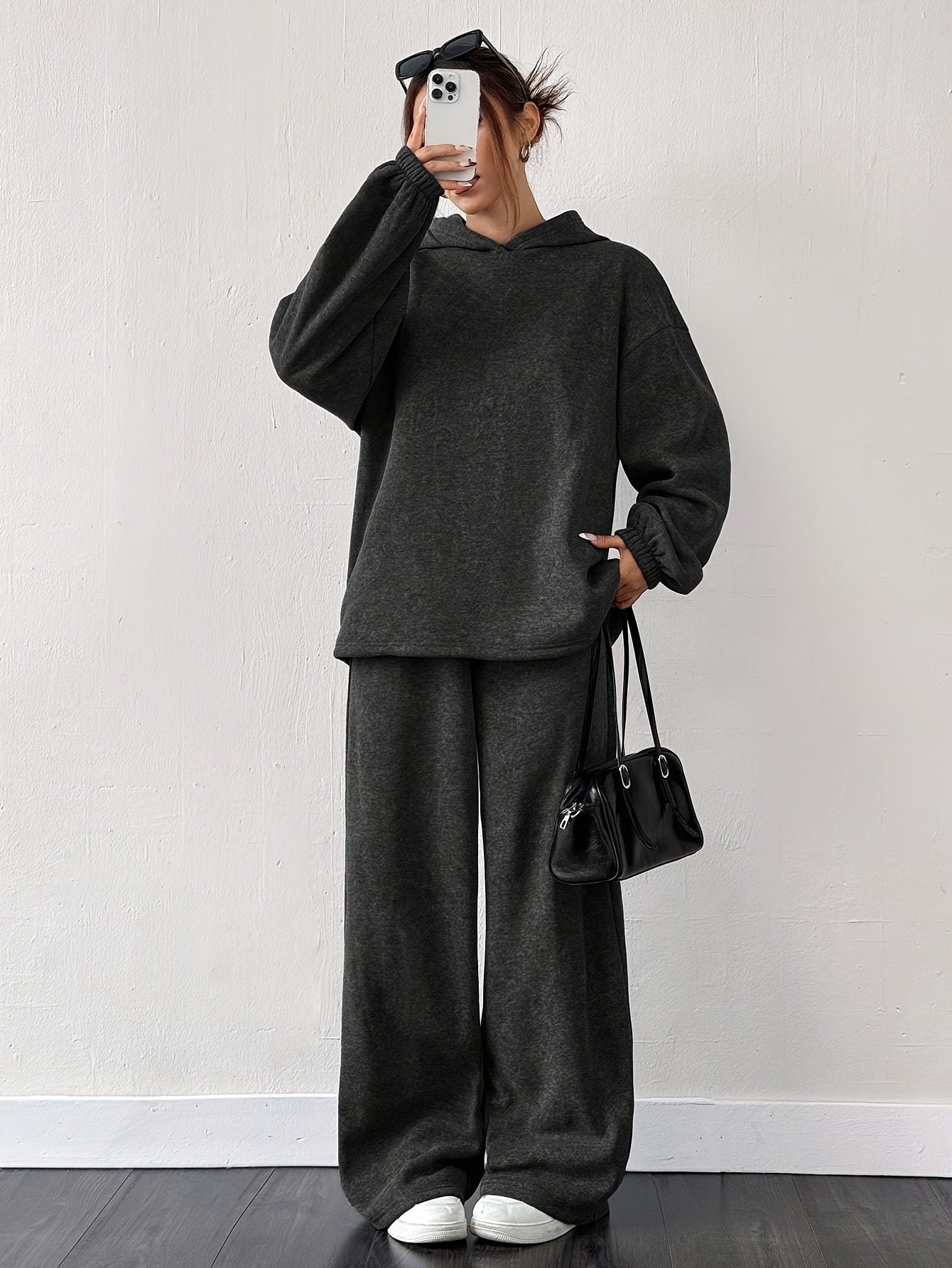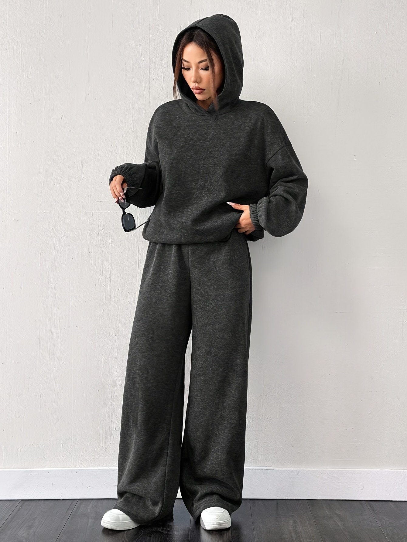 Fashionable Autumn And Winter Two-Piece Set Featuring an Oversized Hooded Sweatshirt with Warm Lining And Wide-Leg Sweatpants.